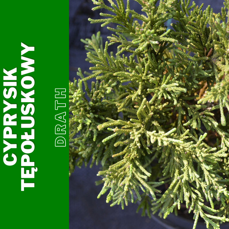 Cyprysik tępołuskowy Drath to odmiana o wyjątkowo ciekawej urodzie i cechach fizycznych. Osiągający ok 2 metry wysokości po 10 latach Drath tworzy wyprostowane, pionowe, pokryte szarozielonymi łuskami pędy. Najbardziej optymalnym stanowiskiem dla Drath będzie stanowisko słoneczne i umiarkowanie wilgotne podłoże. Choć jest dość tolerancyjny na okresowy przerwy bezdeszczowe.